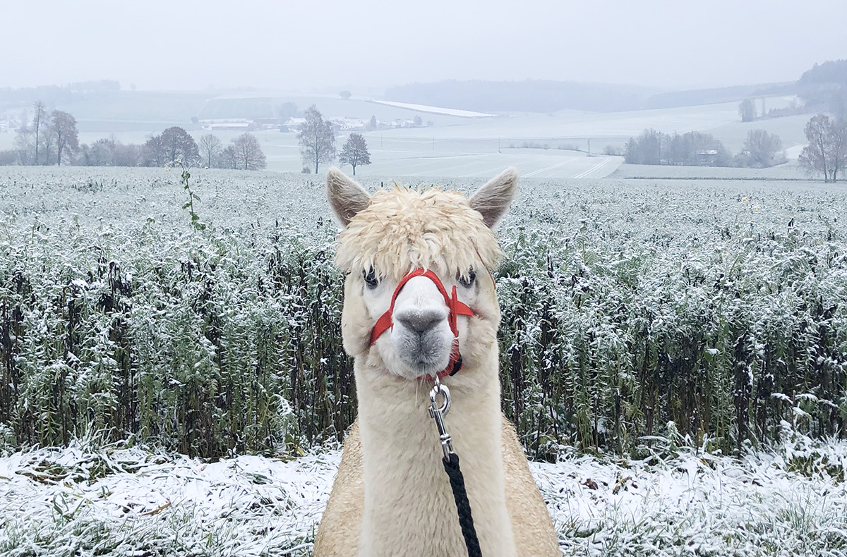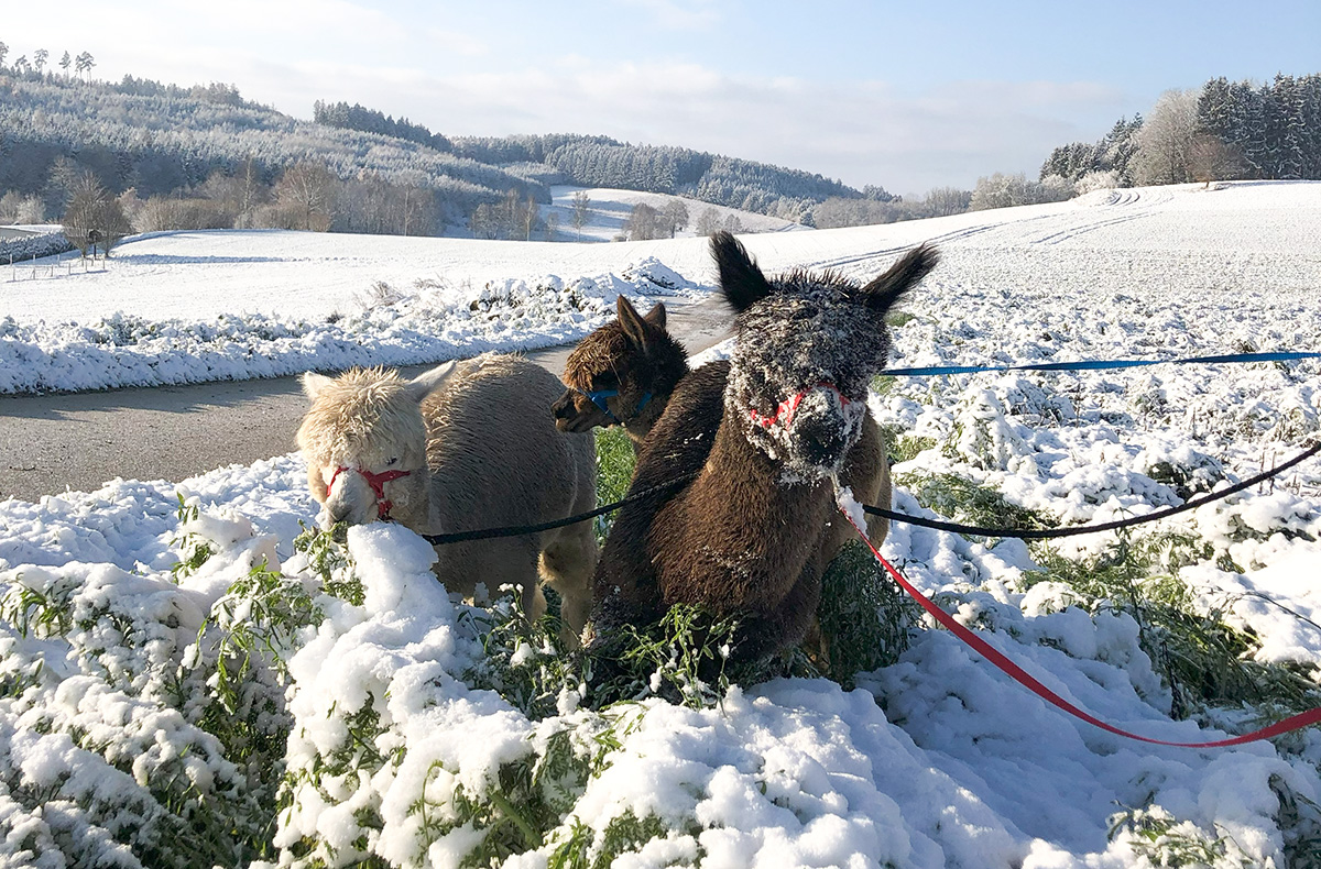 • Winterspaziergang mit eigenem Alpaka