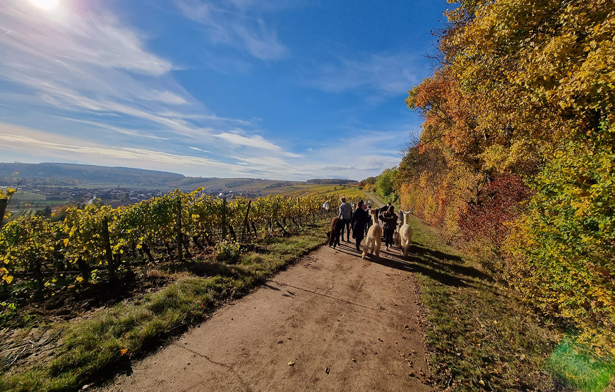 • Alpaka Wanderung in die fränkischen Weinberge