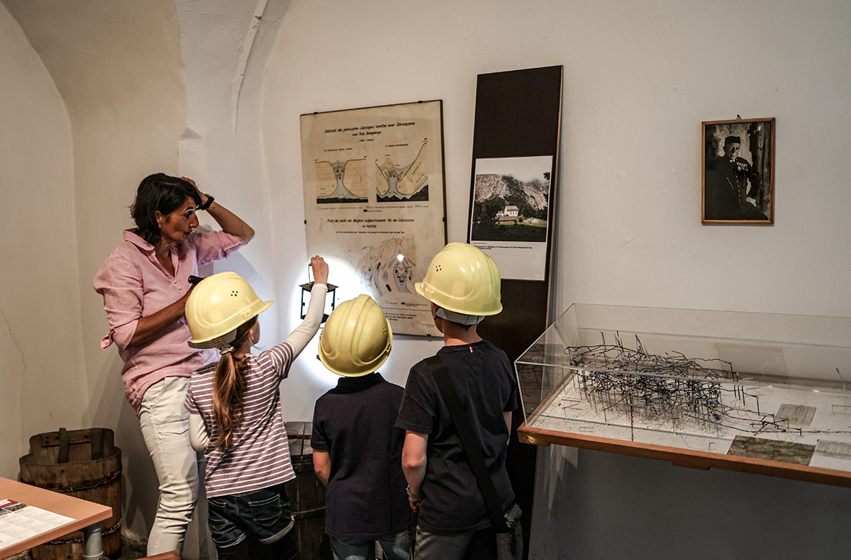 Deine Zeitreise beginnt in dem nachgebauten Haller Bergbaumuseum im ehemaligen Fürstenhaus von Ferdinand II. Während der einstündigen Bergbauführung tauchst Du in die einzigartige Atmosphäre des Museums ein. Im Nu fühlst Du Dich wie unter Tage. Die kleinen Entdecker werden mit Helm und Lampe ausgestattet und dann kann es auch schon losgehen! Auf den Spuren der Vergangenheit schlüpft Ihr selbst in die Rolle von waschechten Knappen. Ganz wie die Bergarbeiter damals bahnt Ihr Euch Euren Weg durch den Stollen.