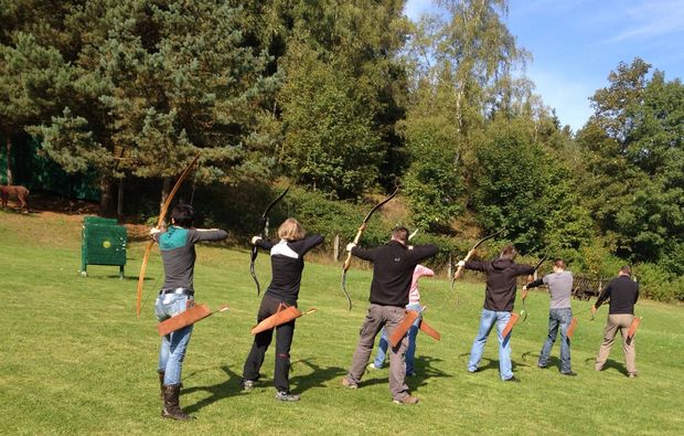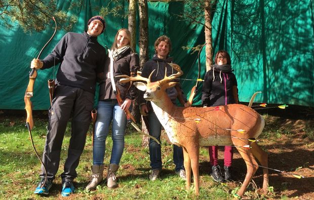 Lerne beim Grundkurs Bogenschießen in Rohrbach bei Meura mit traditionellen Bögen instinktiv auf Scheibe und 3D-Tierattrappen zu schießen und Dein Unterbewusstsein zu aktivieren. Genieße es, einen Langbogen oder einen Recurvebogen zu spannen und erfreue Dich am eleganten Flug Deines Pfeiles.