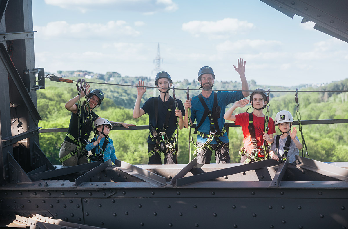 Erlebt das Abenteuer Eures Lebens beim Brückensteig in Solingen über Deutschlands höchste Eisenbahnbrücke. Nach der Begrüßung und Einweisung startet Ihr unter dem mächtigen Bauwerk. Mit Klettergurt und Funkgerät ausgestattet, lauscht Ihr Erzählungen zu ihrer beeindruckenden Geschichte.