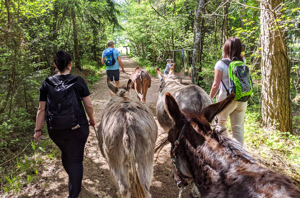 Die geführte Eseltour ist ein Highlight für alle ab 12 Jahren. Die harmonische Einheit von Ruhe und Natur macht jeden Moment einzigartig. Die Verfügbarkeit besteht das ganze Jahr über an ausgewählten Tagen von Donnerstag bis Sonntag – ideal für entspannende Ausflüge in die beruhigende Natur von Fichtenau.