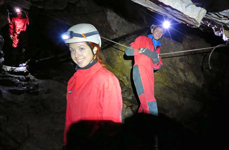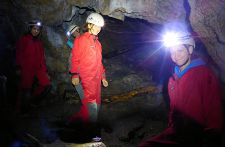 Gut ausgerüstet steigst du also ein in dein Höhlenabenteuer, bzw. hinab in die Höhle! Langsam aber sicher lässt du das Tageslicht hinter dir. Im Inneren der Höhle machst du dich auf zu einer spannenden und abwechslungsreichen Erkundung. Bei dieser Schnupper-Tour wirst du an einigen Kletterstellen dein Können unter Beweis stellen – und wer weiß, mit etwas Glück bekommst du seltene Fledermäuse zu Gesicht.