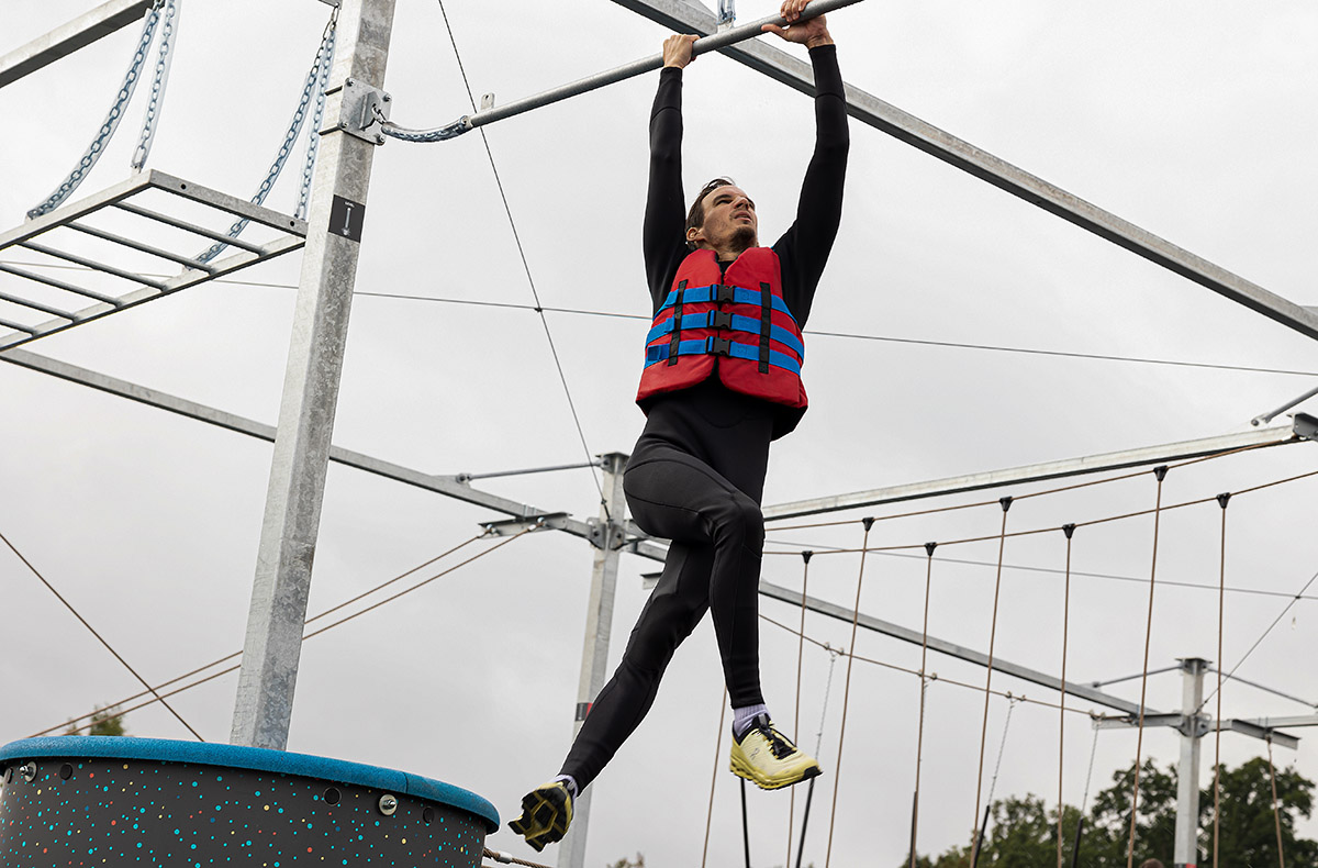 Der Hochseilgarten bietet drei spannende Parcours, die zu jedem Zeitpunkt von erfahrenen Instruktoren betreut werden. Egal ob Anfänger oder Profi, jeder findet hier seine Herausforderung. Der Einstieg erfolgt mit einem erfrischenden Schwimmen zum Parcour und macht damit das Erlebnis bereits einzigartig.