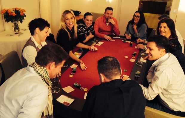 der Croupier für alle Spielerklärungen ausführlich zur Verfügung. Denn du musst kein Profi sein um hier dein Spiel machen zu können. Dann startet die Pokernight. Fullhouse, Flush, Drilling? Welches Pokerblatt ist nochmal das Stärkste? Und was passiert wenn zwei Spieler jeweils zwei Paare haben? Wer gewinnt? Um all diese Fragen zu beantworten werden nun ein paar Trainingsdurchläufe gespielt bis sich alle Gäste regelsicher fühlen. Nach diesem Einblick in die professionelle Pokerwelt ist jetzt vielleicht der geeignete Zeitpunkt für eine Dinnerpause? Gestärkt und motiviert geht es nun in die heisse Phase des Gameduells. Das Pokerturnier startet! Wie gut kennst du deine Freunde und Familie? Durchschaust du deren Bluffs oder lässt du dich gnadenlos abzocken? Die Poker Challenge wird zeigen wer die besten Nerven hat.