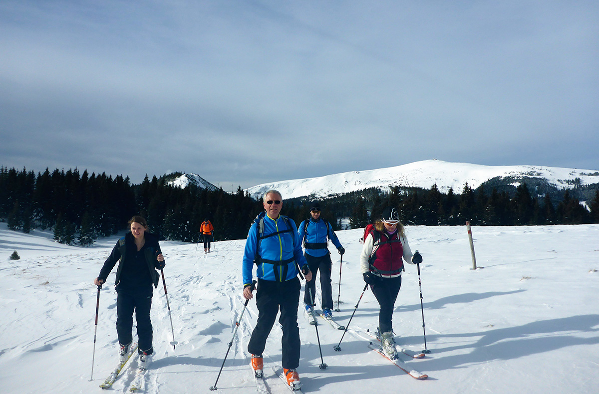 Durch verschneite Wälder und über winterliche Almen führt Sie Ihr Guide an die schönsten Plätze. Am Gipfel angekommen, legen Sie eine kurze Rast ein, um das einzigartige Panorama zu genießen, sich nochmals zu stärken und Ihre Ski für die Abfahrt bereit zu machen.