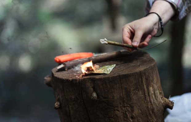 • Feuer machen mit verschiedenen Hilfsmitteln und Materialien