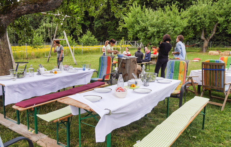Gestärkt sammelt Ihr auf den umliegenden Wiesen Kräuter für Euer Mittagsessen. Hier erfährst Du alles Wichtige über die Heilmittel wie z.B. ihre Namen, ihre Erkennungsmerkmale sowie ihre Heilwirkung. Gemeinsam werdet Ihr auf der Hauswiese der Teuberts aus den herrlich duftenden Kräutern Euer Mittagessen zubereiten. Beim gemeinsamen meditativen Spaziergang durch den Wald mit den Alpakas und einer letzten Yoga-Einheit lässt Du den Tag perfekt ausklingen.