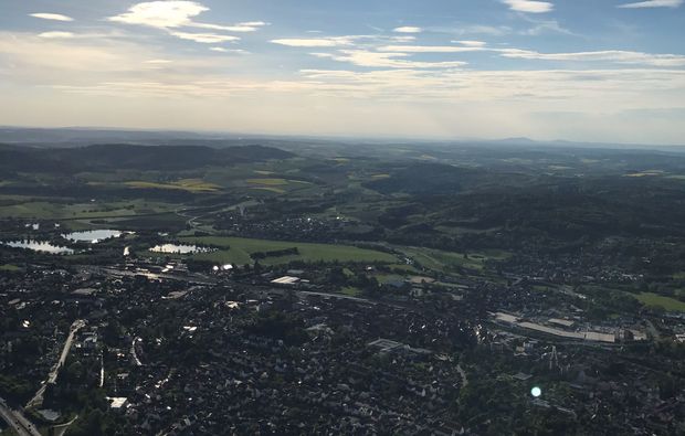 Am Startplatz angekommen werdet Ihr von Eurem langjährigen Piloten zu Eurer Ballonfahrt über Zweibrücken begrüßt und eingewiesen. Der Ballon liegt jetzt noch als flache Hülle auf dem Boden, während die Helfer alle Vorbereitungen treffen – schon dabei zuzusehen, ist ein Erlebnis für sich. Wenn alles fertig ist, steigt Ihr in die Gondel – und die Aufregung steigt. Jetzt gibt es kein Zurück mehr: Die Leinen werden gelöst, einige Sandsäcke werden über Bord geworfen und mit einem sanften Ruck verlasst Ihr den sicheren Boden unter Euren Füßen – ein unglaubliches Gefühl! Nach einem spektakulären Start geht es in gemächlichem Tempo und mit Seelenruhe geradewegs dem Himmel entgegen! Unter Euch winken Freunde und Bekannte, während Ihr Hausdächer und Baumwipfel passiert, langsam, aber sicher im höher steigt und die endlose Weite um Euch herum immer greifbarer wird. Felder und Wälder scheinen zu schrumpfen, Straßen und Flüsse werden zu kleinen Linien und Autos und LKW verwandeln sich zu kleinen Spielzeuggefährten in weiter Ferne. Der Horizont präsentiert Euch spektakuläre Farbenspiele, Vöglein sagen Guten Tag und kleine Schäfchenwolken ziehen unter Euch her. Während Ihr diese atemberaubenden Aussichten in vollen Zügen genießt, lasst Ihr Euch frische Höhenluft um die Nase wehen, vom Wind treiben und erlebt den Traum vom Fliegen am eigenen Leib! Eure Ballonfahrt über Zweibrücken dauert 60 bis 90 Minuten, immer abhängig von Witterung und Windrichtung. Insgesamt solltet Ihr für dieses faszinierende Erlebnis jedoch vier bis fünf Stunden einplanen. Schließlich ist mit dem Flug noch lange nicht alles vorbei! Abgesehen von der aufregenden Vorbereitungszeit steht Euch auch nach der Landung noch ein echtes Highlight bevor: Es folgt die traditionelle Ballonfahrertaufe, bei der Erstflieger in den Club der Ballonfahrer aufgenommen werden. Standesgemäß wird eine Flasche Sekt geköpft und Euch wird eine wohlverdiente Urkunde überreicht! Cheers auf ein Abenteuer, das Ihr ganz bestimmt nicht mehr vergessen werdet!