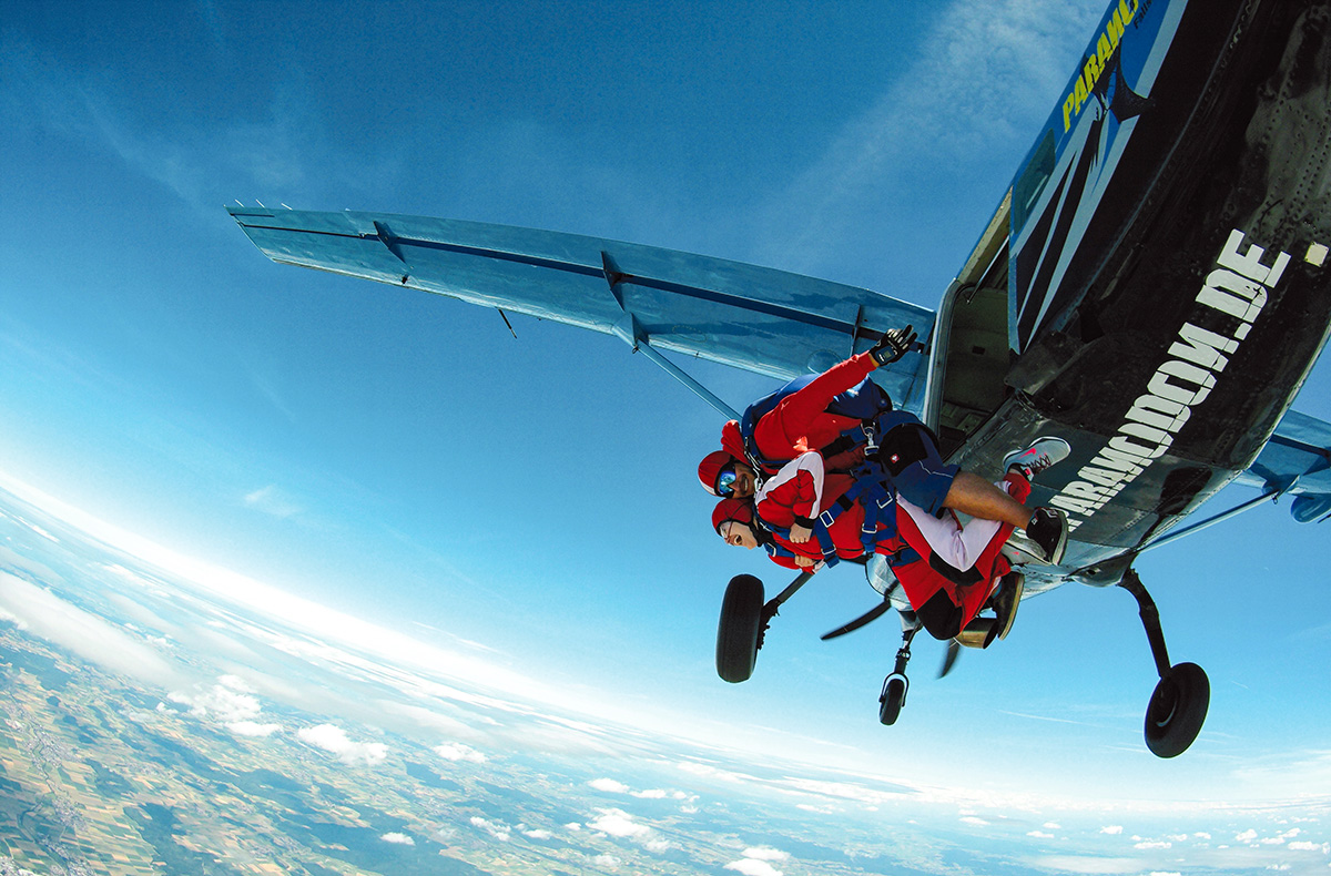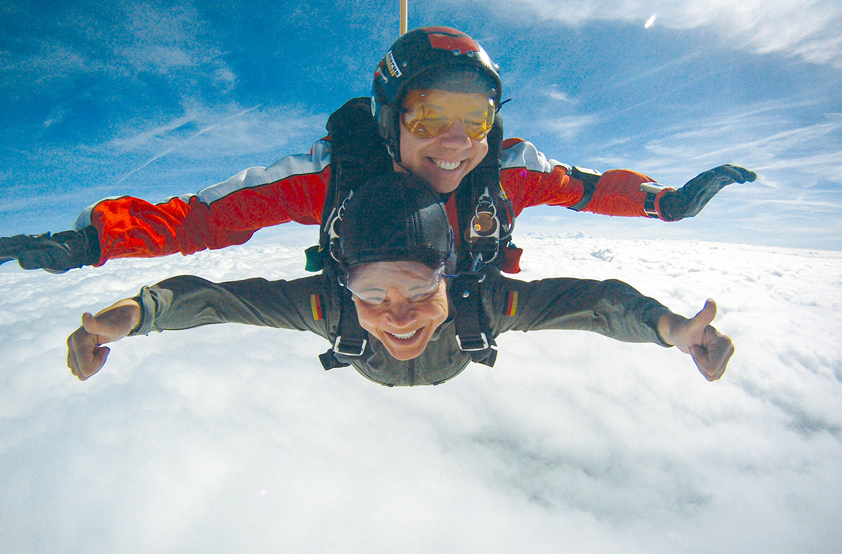 Ein Tandemsprung mit dem Fallschirm schenkt ein Gefühl grenzenloser Freiheit und unvergessliche Eindrücke. In Begleitung eines erfahrenen Tandem-Masters geht es hoch hinaus in den Himmel. Der Moment, wenn die Tür des Flugzeugs aufgeht, bringt pure Vorfreude mit sich. Dann erfolgt der Absprung, begleitet von einem einzigartigen Gefühl aus Schweben und Tempo, während der Wind sanft vorbeizieht. Nach etwa 50 Sekunden freiem Fall öffnet sich Dein Fallschirm und ein ruhiges Gleiten beginnt. Die Welt zeigt sich aus einer völlig neuen Perspektive, während die kostbare Zeit in der Luft bewusst genossen wird. Eine sanfte Landung rundet das besondere Erlebnis ab. Diese eindrucksvollen Augenblicke bleiben für lange Zeit in Erinnerung.