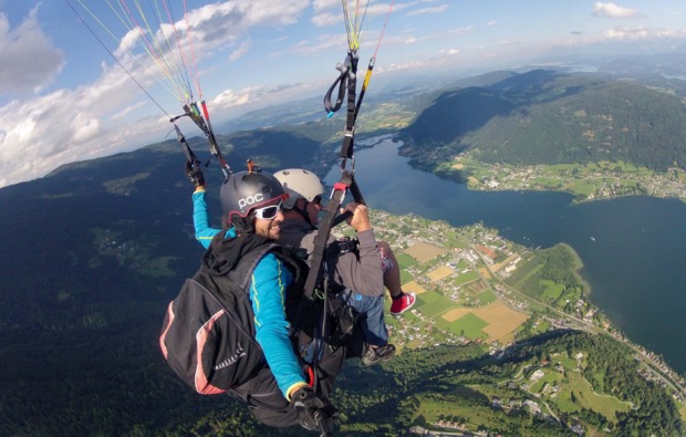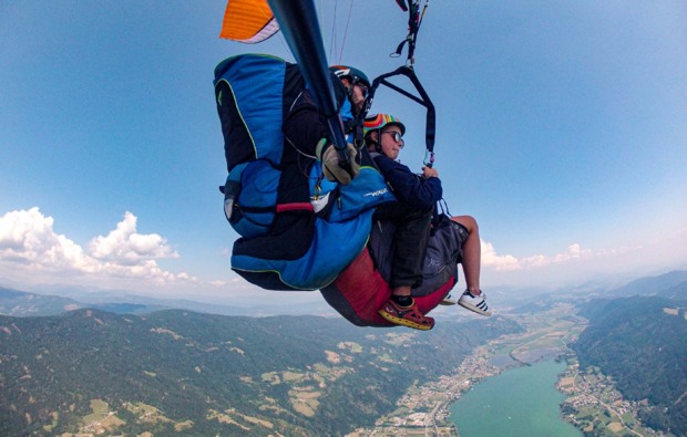 In der Luft erwartet Euch eine wunderbare Aussicht. Adrenalin pumpt Durch Deine Adern, während Du von den Bergen lautlos talwärts gleitet. Bewundere die wunderschöne Kärntner Berg- und Seenlandschaft aus der Vogelperspektive und genieße 20-30 Minuten Schwerelosigkeit. Bei Deinem Flug kannst Du Dich entspannt zurücklehnen, denn der staatlich geprüfte Tandempilot sorgt dafür, dass Du nach diesem Höhenflug wieder sanft landest.