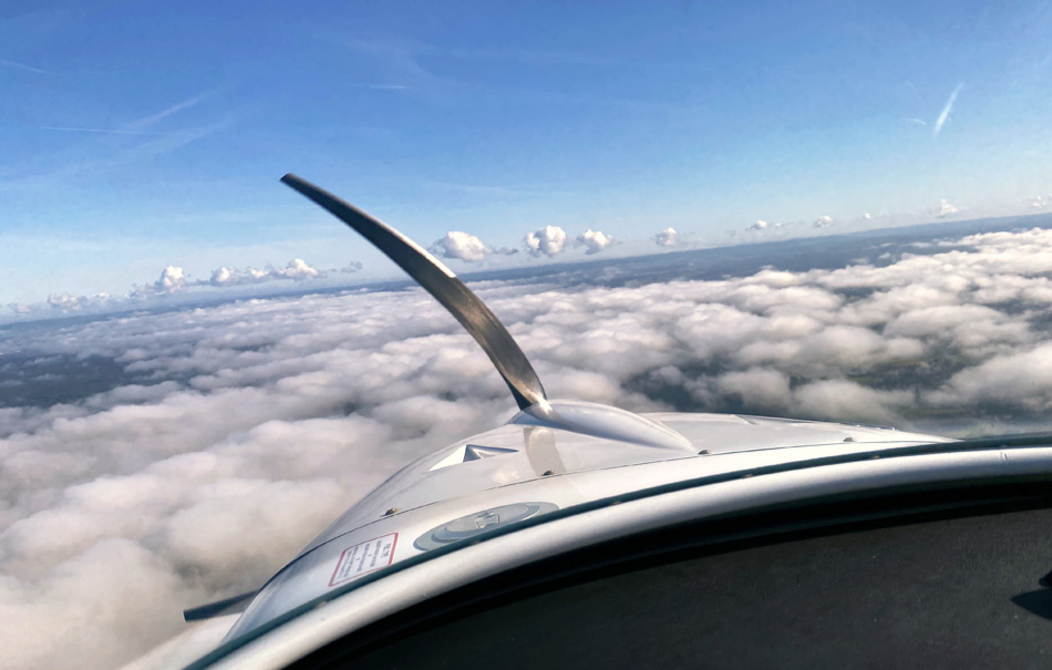 Fast eine Stunde lang genießt Du die Aussicht auf die Welt unter Dir. In 3000 Meter Höhe rauscht Ihr mit 230 km/h im Ultraleichtflugzeug Alpi Aviation Pioneer 200 über dem Wolkenmeer hinweg. Ihr dreht ein paar unvergessliche Runden, bevor Ihr Euch auf den Sinkflug macht. Die Landeklappen fahren aus und Ihr setzt sachte auf der Piste auf. Wow!