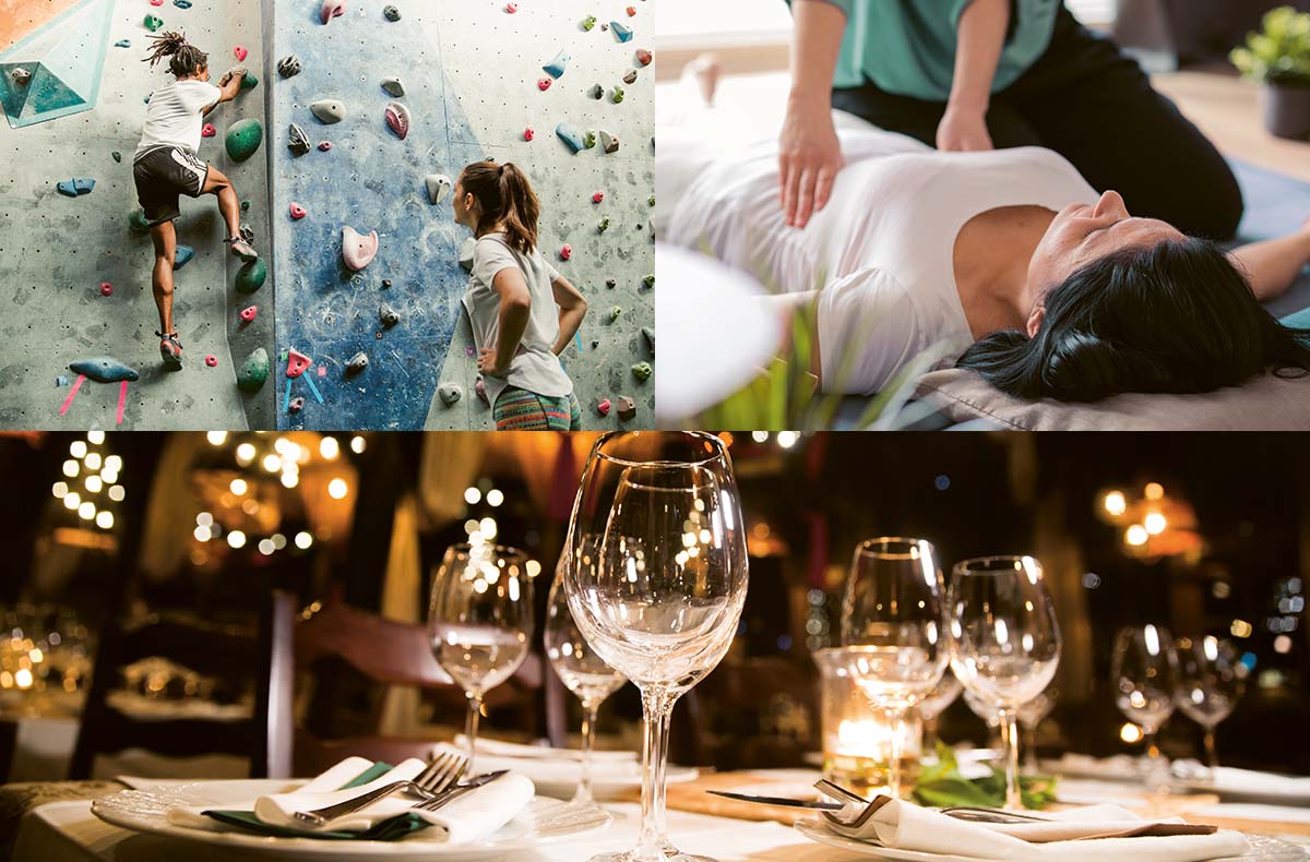 - Beispielerlebnisse: Dinner in the Dark, Massage, Kletterkurs