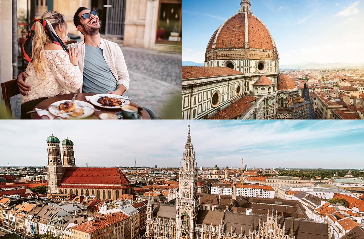 Erlebt gemeinsam Europas schönste Städte und sammelt bleibende Eindrücke. Von romantischen Spaziergängen bis hin zu aufregenden kulturellen Highlights – jede Stadt bietet Euch einzigartige Momente, in denen Ihr gemeinsam Zeit verbringt und neue Lieblingsorte entdeckt. Eure Reise wird voller besonderer Augenblicke sein, an die Ihr euch lange erinnert.