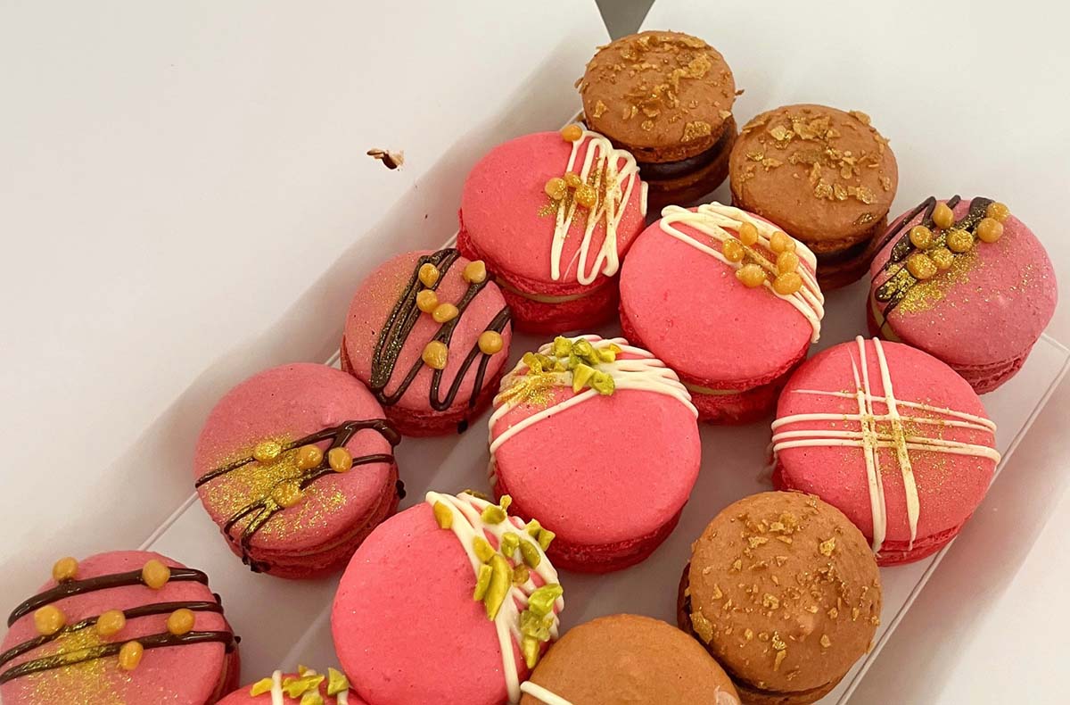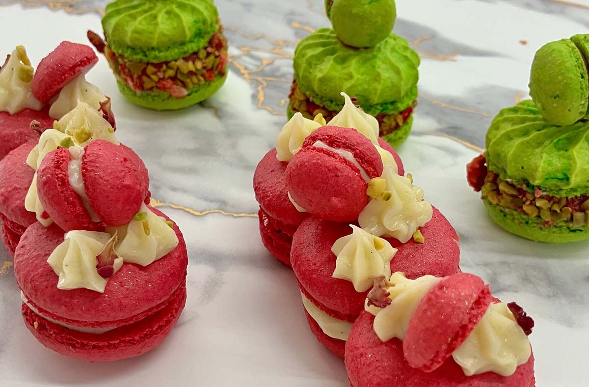 • Lerne das Bunte einfärben, das korrekte Aufspritzen und Backen und die Herstellung der süßen Füllungen