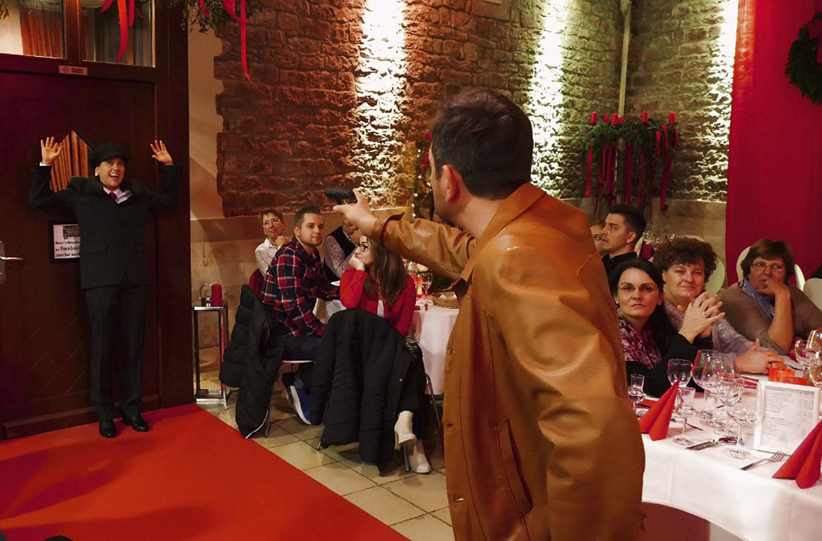 Gespannt verfolgst Du den Live-Krimi. Drama, Nervenkitzel und Humor kommen hier nicht zu kurz! Schaffst Du es, die Rätsel zu lösen und den Täter zu fassen? In den Pausen zwischen den Akten wird Dir ein köstliches 3-Gänge-Menü serviert. Das leckere Menü löst Geschmacksexplosionen auf Deiner Zunge aus. Von salzig, süß bis hin zu herzhaft ist alles dabei. Nach dem genüsslichen Verzehr kannst Du Dich wieder ganz auf den spannenden Kriminalfall konzentrieren.
