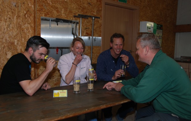 Unter der fachmännischen Anleitung des ausgewiesenen Experten, verkostest Du die unterschiedlichen Biere, die an diesem Tag gebraut wurden. Dabei entdeckst Du die kleinen, aber feinen Unterschiede der einzelnen Sorte. Mit der zuvor gelernten Sensorik, unterscheidest Du die einzelnen Geschmacksnoten und machst dabei Deinen ganz persönlichen Favoriten aus. Mit einer köstlichen Brotzeitplatte bestehend aus leckerem Bierkrustenbrot, Schinken, Wurst und Gurke kommt auch das leibliche Wohl beim Braukurs Grönwohld nicht zu kurz. Während des Seminars stehen natürlich auch ausreichend Softgetränke und Wasser zur Neutralisierung zur Verfügung.