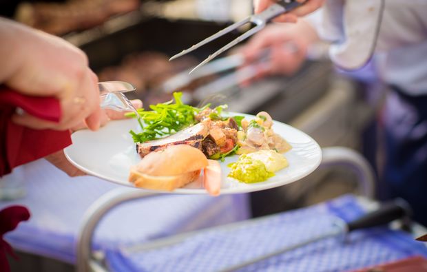 Doch bevor es soweit ist, stehen zu Beginn natürlich diverse Vorbereitungen auf dem Programm! Nach einer kleinen Lebensmittelkunde beginnst Du mit dem Anrichten der Marinaden und Dips und kümmerst Dich um unterschiedliche Beilagen. Danach landet dann eine ausgewählte Komposition aus Lachs oder Forelle, Bierhähnchen, Lamm, Jungschweinrücken und Grillgemüse auf dem Rost. Serviert mit Süßkartoffeln und Baguette entstehen beim Grillkurs in Dresden delikate Vor- und Hauptspeisen vom Grill. Jetzt fehlt eigentlich nur noch ein guter Nachtisch? Bei diesem Grillevent der Extraklasse wird der selbstverständlich auch auf dem Grill zubereitet. Hast Du schon einmal eine gegrillte Eisbombe probiert? Nach dem Grillkurs in Dresden weißt Du, wie sie schmeckt! Du bist neugierig wie diese Gerichte zubereitet werden? Bei diesem diesem Grillkurs in Dresden wird Dir jeder Arbeitsschritt von einem erfahrenen Experten gezeigt!
