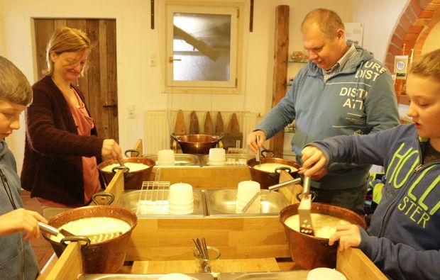 • Herstellung eines Frischkäselaibes, der anschließend mit nach Hause genommen wird