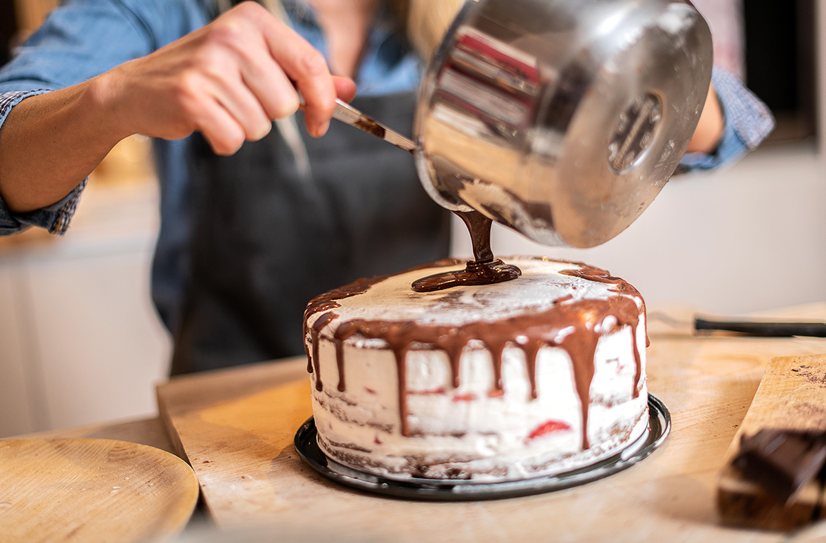 Stolz betrachtest Du Dein fertiges Werk. Doch irgendetwas fehlt. Der Konditormeister weiß auch was: Dekoration. Also streichst Du im letzten Schritt die Torte ein und dekorierst sie liebevoll. Wow, sieht Deine Torte jetzt lecker aus! Und nicht nur das, beim Torten Backkurs in Würzburg schaust Du Dir auch so manchen Tipp für Deine Backstube daheim ab.