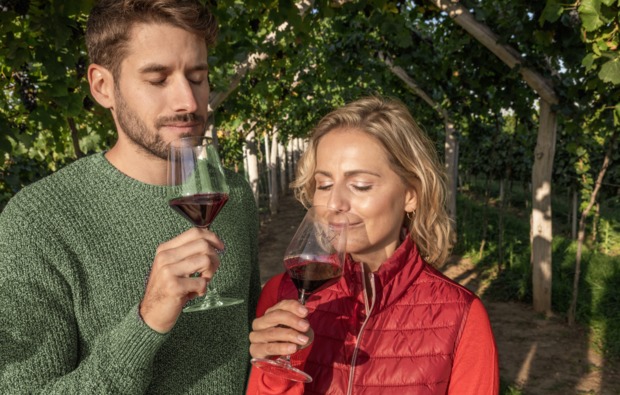 Im Anschluss wird es dann kulinarisch. Wie man Wein richtig verkostet, zeigt Dir der Winzer und reicht Dir im Weingarten zehn verschiedene Weine zur Probe. Bei dieser Verkostung erklärt er Dir natürlich die wichtigsten Fakten zu jedem Wein und Du wirst schnell die Unterschiede zwischen den Tropfen feststellen. Vermutlich bist Du jetzt zwar voller Freude über all das Neue, das Du bisher gelernt hast, aber auch erschöpft von der Weinbergwanderung Worms. Auch dafür ist selbstverständlich gesorgt: Im Weingewölbe mit seinem urigen Charme steht Dir zum Abschluss ein warmes Winzerbuffet zur Verfügung, über das Du Dich nun hermachen darfst. Zum Essen stehen drei Sorten Wein zur Auswahl: trockener, Riesling, lieblicher Rosé und ein trockener Spätburgunder Rotwein. Außerdem bietet der Hausherr auch Mineralwasser und Traubensaft an.