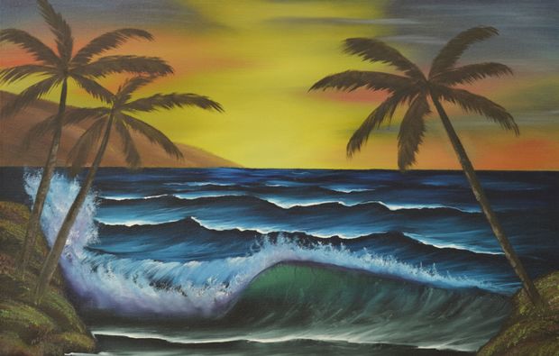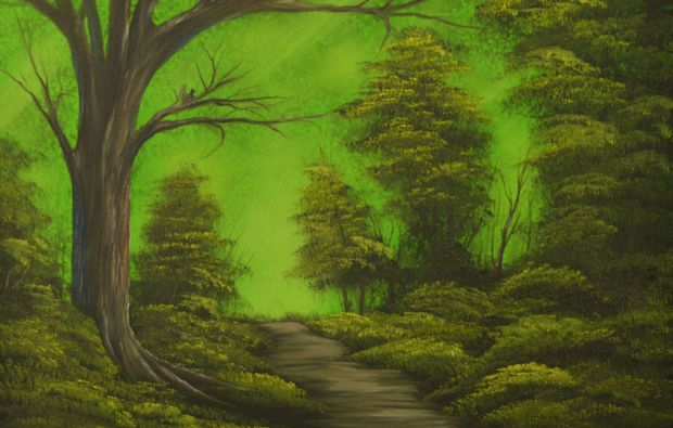 Malen eines ca. 50 x 60 cm bzw. 40 x 50 (je nach Motiv) großen Ölbildes nach der Bob Ross ®-Technik unter professioneller Anleitung