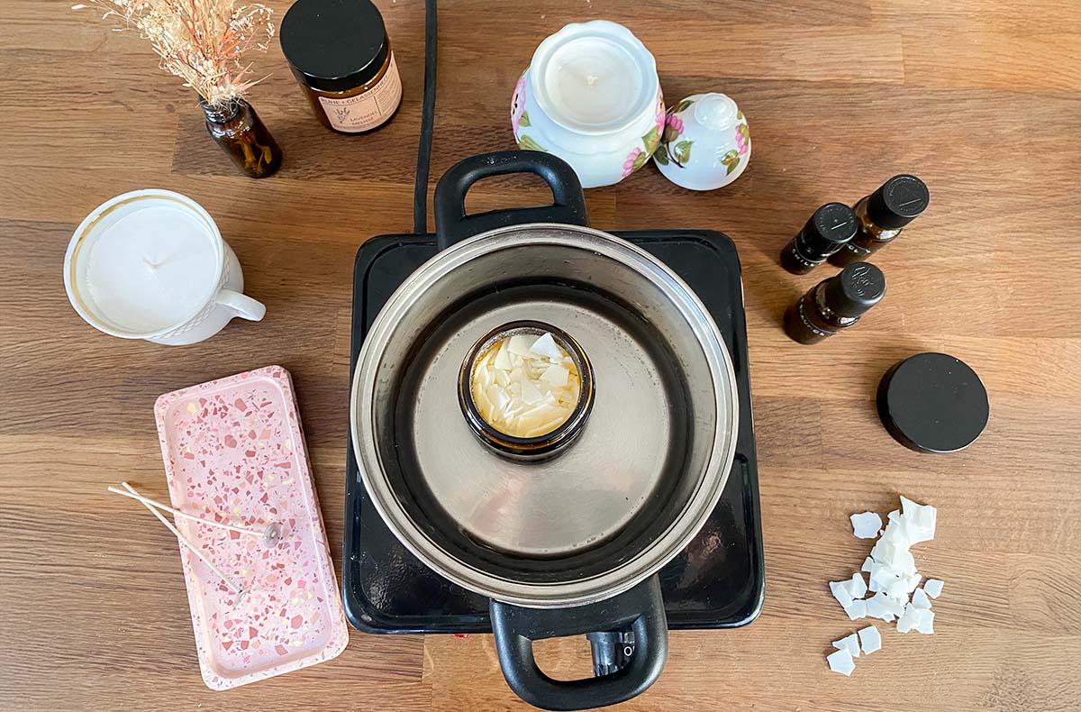 • Einführung in die verwendeten Materialien (Wachs, Dochte, Öle), Tipps, Tricks und wichtige Hinweise zur Herstellung von Duftkerzen