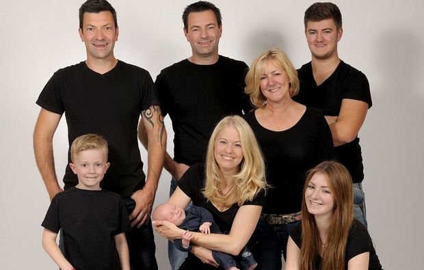 Mit bis zu sechs Personen könnt Ihr bei Eurem Familien-Fotoshooting in Bielefeld anrücken und das Fotostudio mit der ganzen Rasselbande aufmischen! Das verspricht nicht nur traumschöne Erinnerungsfotos, sondern auch jede Menge Spaß für alle Beteiligten. Ob Großeltern, Eltern und Kinder, nur Eltern und Kinder oder ob Schwager und Schwippschwager zum harten Kern dazugehören – wer mit auf Eure Familienfotos in Bielefeld darf, bleibt ganz Euch überlassen. Im Vorfeld überlegt Ihr Euch am besten schon, ob die Aufnahmen unter einem bestimmten Motto stehen sollen und welche Kleidung Ihr tragen wollt. Besonders harmonisch, aber dennoch nicht zu gestellt wird es, wenn alle ähnlich angezogen sind, beispielsweise sportlich in Jeans und farbigem Shirt oder elegant in Schwarz. Die Hauptsache ist, dass Ihr Euch alle wohl in Eurer Haut fühlt – nur so können wunderschöne Familienfotos in Bielefeld entstehen. Insgesamt dauert die Fotosession rund eine Stunde. Im Erlebnis enthalten ist ein Abzug von Eurem Lieblingsmotiv im 20x30-Format sowie als Datei auf CD.