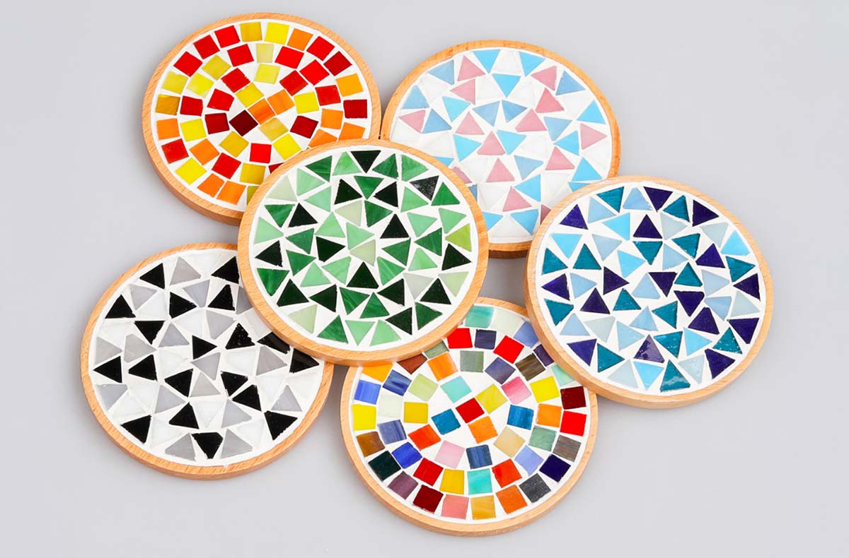 • Erstelle deine eigenen Mosaikuntersetzer oder ein Mosaiktablett