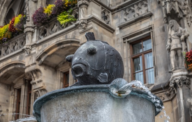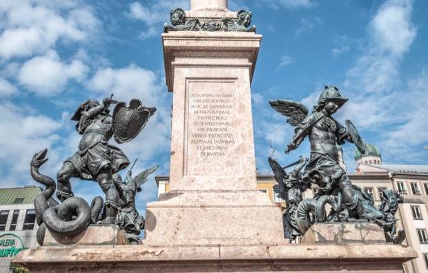 Sightseeing der anderen Art erwarten Euch bei dieser 1,5-stündigen Stadttour durch die bayerische Hauptstadt: Statt Hofbräuhaus und Glockenspiel schaut Ihr hinter die Kulissen der historischen Gebäude und entdeckt die Sagen und Geheimnisse so manches herrschaftlichen Gemäuers. Geschichten und Geschichtchen weiß Euer fachkundiger Führer, der Euch bei dieser klassischen Stadtführung München mit durch die Altstadt nimmt. Ganz egal, ob Ihr waschechte Münchner seid oder Besucher der Isarmetropole: Diese Legenden werden Euch überraschen! Am Lindwurm am Rathaus geht sonst jeder vorbei, aber heute schaut Ihr genau hin und erfährt, welch unheilvolle Geschichte mit dem dämonischen Tier zusammenhängt. Auch die kleinen Heldenputti auf der Mariensäule haben eine Aufgabe – aber gegen welche Ungeheuer wendet sich ihr Zorn? Und was hat ein Affe im Alten Hof zu suchen? Diesen Fragen geht Ihr auf den Grund und lasst Euch von den heldenhaften Sagen, von unheimlichen Begegnungen und düsteren Vorhersagen verzaubern.
