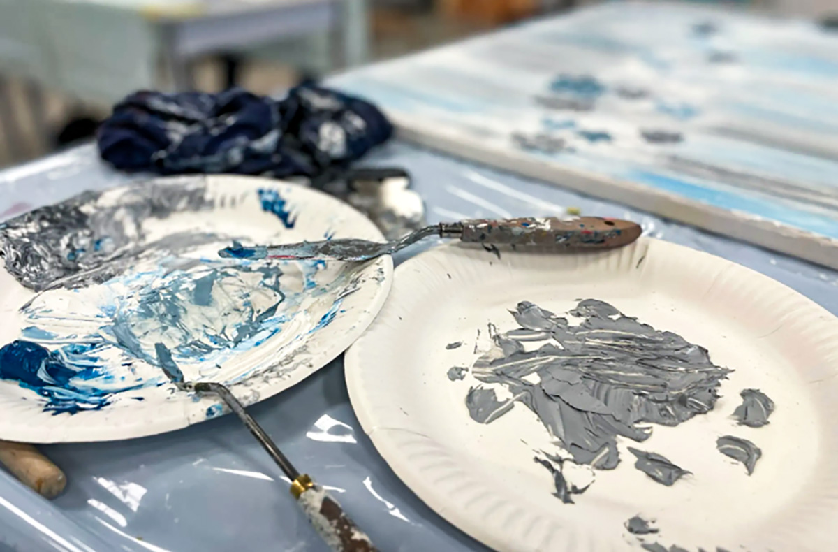 • Lerne Spachteltechniken mit Öl oder Pinsel in Kombination mit Acrylfarbe