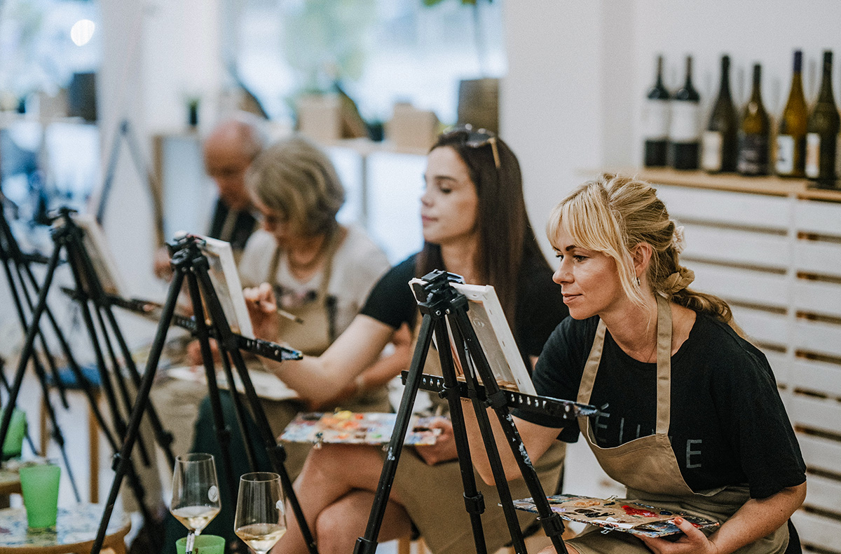 Während Ihr Euer Meisterwerk erschafft, genießt Ihr eine kuratierte Weinprobe. Vier erlesene Weine, passend zum künstlerischen Thema, werden vorgestellt – inklusive Hintergrundwissen über die Weingüter und die Aromen. Für alkoholfreie Alternativen ist ebenfalls gesorgt. Die Kombination aus Malerei und Wein schafft eine inspirierende Atmosphäre, die Ihr so schnell nicht vergessen werdet.