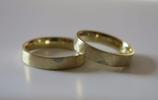 Unter der fachlichen Anleitung und mit den hilfreichen Tipps und Tricks der Goldschmiedemeisterin macht Ihr Euch dann gemeinsam an die Arbeit. Ihr sucht Euch das gewünschte Material für Eure Trauringe und könnt diesen mit einer persönlichen Gravur durch die Maschine oder auch per Hand sogar noch den letzten Feinschliff geben. Beim Trauringe selber schmieden für Zwei schafft Ihr Euch selbst eine bleibende Erinnerung und einen unvergesslichen Tag noch bevor Ihr vor den Altar tretet. Am Ende dieses spannenden und kreativen Tages nehmt Ihr Eure Eheringe in speziellen Etuis direkt mit nach Hause.