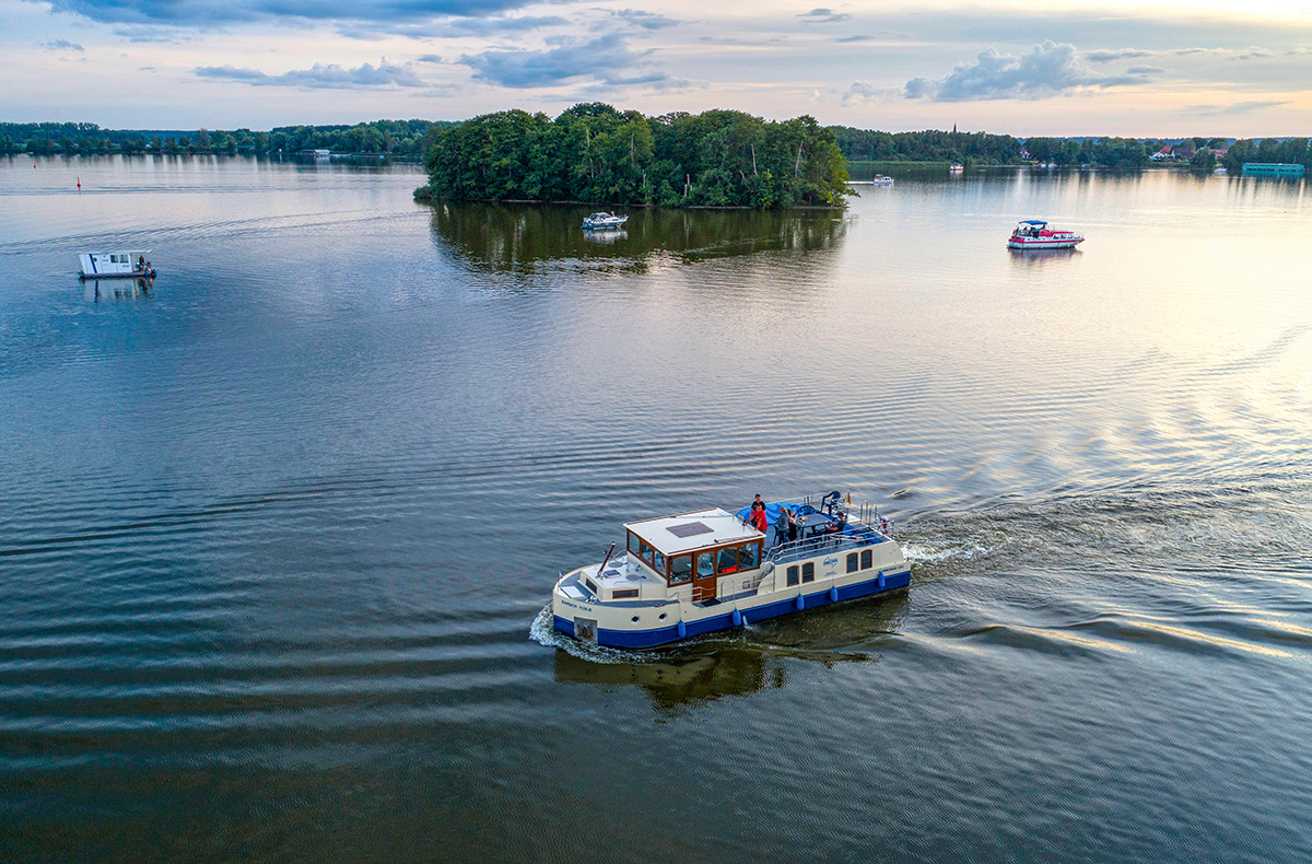 Buche jetzt Deine Hausboot-Übernachtung Rechlin auf der Vetus 900 und genieße die wunderschöne Landschaft. Entfliehe dem Alltag bei einem Urlaub auf dem Hausboot.