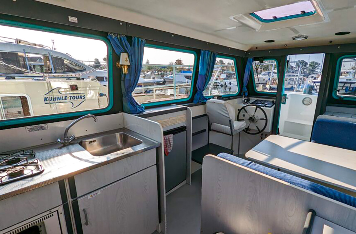 Für den Wasserspaß ist kein Sportbootführerschein notwendig. Eine 3-stündige Chartereinweisung (1,5 h Theorie und 1,5 h Praxis) ersetzt diesen und garantiert den perfekten Erholungsurlaub auf der Vetus 900. Bevor die Hausboot-Übernachtung Rechlin losgeht, erhältst Du zudem ein Kapitänshandbuch und einen Törnführer. Der Urlaub auf dem Hausboot beinhaltet ein vollständiges Inventar mit Haushalts- und Bootszubehör, Geschirr, Gläser, Besteck, Kochgeschirr sowie Küchenzubehör. So bist Du perfekt ausgestattet und musst von zu Hause nur wenig mitbringen. Die integrierte Dusche beinhaltet fließend Warm- und Kaltwasser. So wird der Urlaub auf dem Hausboot zu einem entspannten Trip für Dich, Deine Familie oder Deine Freunde. Die Pantry-Küche begeistert mit einem Gasherd mit Kochplatten, einem Kühlschrank sowie elektrisches Licht für das perfekte Dinner auf dem Wasser.