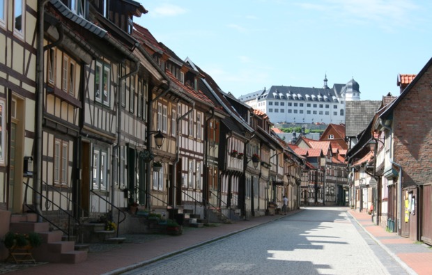 Der hält jede Menge Highlights für Euch bereit, denn Euer Kurztrip in Stolberg hat viel zu bieten: Erkundet die Stadt und bummelt durch die verwinkelten Gassen. Vom Schloss Stolberg aus habt Ihr einen herrlichen Blick über die Landschaft. Macht Euch auf Schusters Rappen auf, die sagenumwobenen Wälder und Berge des Harzes zu erkunden und lasst Euch von Märchen über Hexen, Geistern und Dämonen mitreißen. Im Schaubergwerk oder in der Tropfsteinhöhle werden die Berggeister lebendig und auf dem Brocken erschafft der Nebel ganz eigene Kreaturen. Dort hinauf geht es mit einer der Harzer Schmalspurbahnen: Die Fahrt ist ein besonderes Erlebnis, da Euch hier noch eine Dampflok schnaufend ans Ziel bringt.