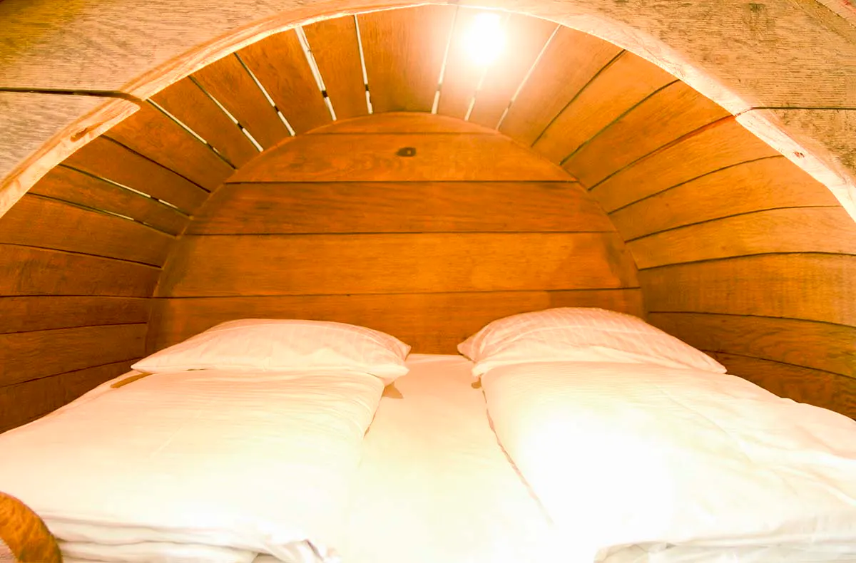 Zwar ist Dein Übernachtungsfass rund, aber dennoch musst Du keine Angst haben, dass Du in der Nacht ins Rollen gerätst. Denn Dein Bierfass befindet sich in einem Themen-Hotelzimmer und ist so gesichert, damit Deine außergewöhnliche Übernachtung für Dich zu einem unvergesslichen Erlebnis mit einer angenehmen Nachtruhe und phantasievollen Träumen wird. Schlummert gemeinsam entspannt in Eurem Bierfass und genießt gleichzeitig den Komfort eines Vier-Sterne-Hotels.