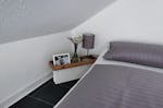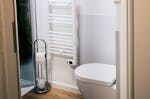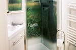• Badezimmer: WC, Dusche (1,2 m x 0,8 m), Eckwaschbecken und Fenster