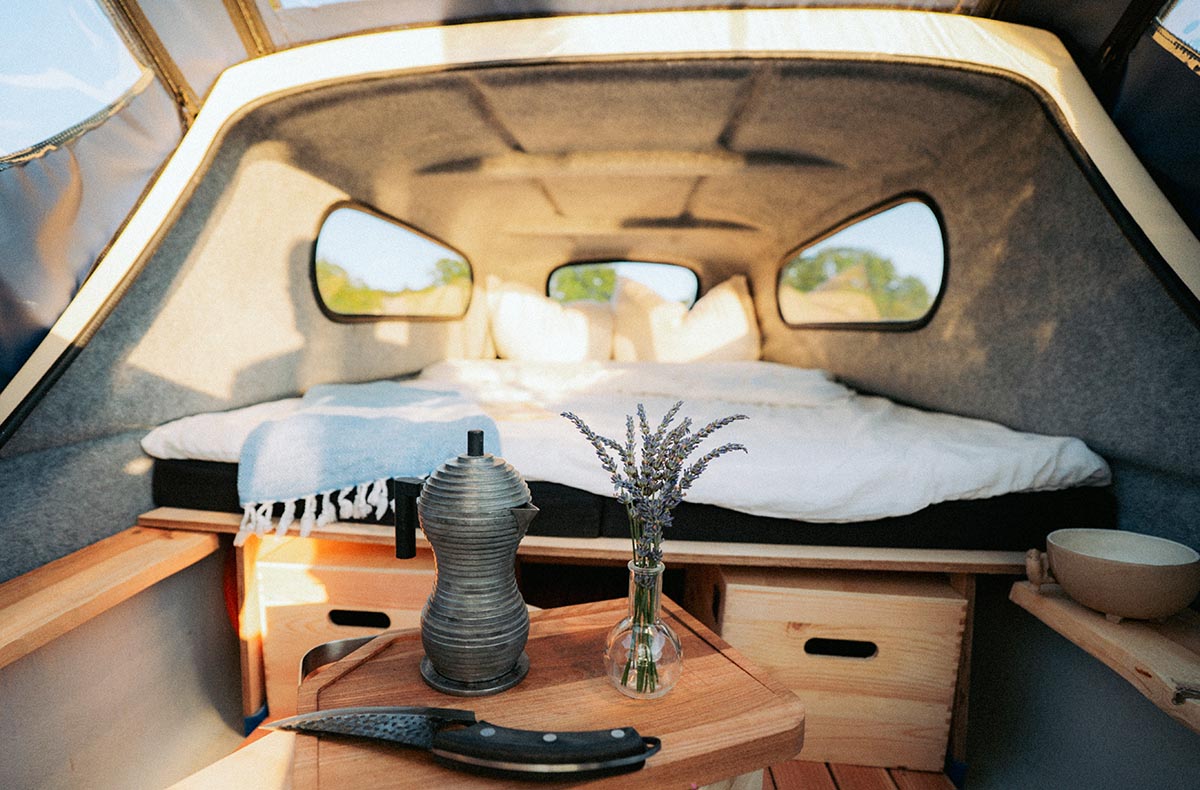 Eine Übernachtung im Campingboot Entenkoje Buckow für 2 (1 Nacht) schenkt Euch eine wohltuende Pause mitten auf dem Wasser – sanft schaukelnd in der malerischen Kulisse der Märkischen Schweiz. Das kleine, charmant eingerichtete Tiny House Boat bietet Euch eine stilvolle Rückzugsoase mit gemütlichem Schlafplatz, duftendem Kaffee am Morgen und direktem Blick auf die umliegende Natur. Dank der ruhigen Lage lässt sich hier wunderbar abschalten, durchatmen und einfach den Moment genießen. Gemeinsamzeit bekommt auf diesem liebevoll umgebauten Campingboot eine ganz neue Bedeutung. Wenn Ihr Euch nach Ruhe, schöner Zweisamkeit und innigen Erinnerungen sehnt, seid Ihr hier genau richtig. Sichert Euch ein Plätzchen auf dem Wasser und lasst den Alltag sanft vorbeiziehen.