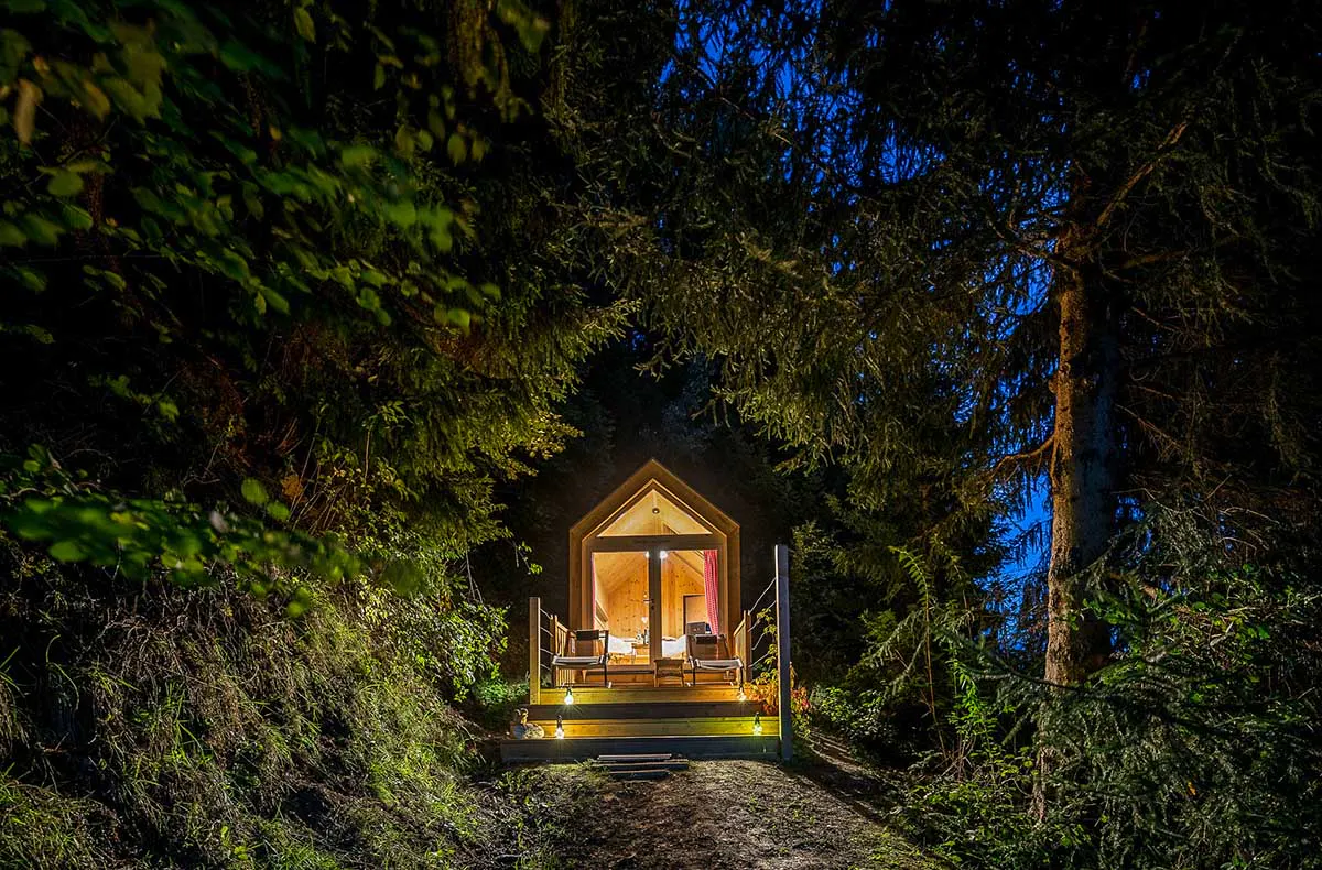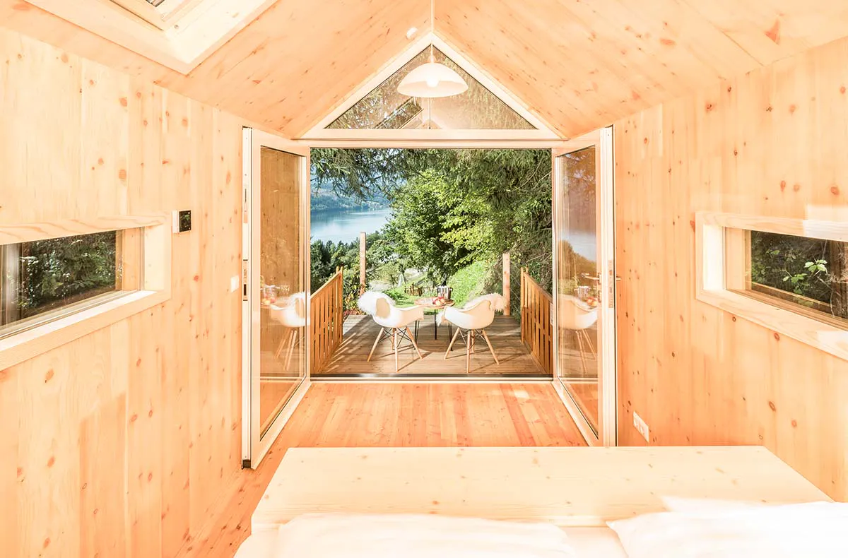 Was die Biwak Übernachtung in Millstatt so einzigartig macht, erfahrt Ihr dabei schon bei der ersten Besichtigung Eurer Schlafstätte. Fernab von anderen Gästen und dem Trubel der klassischen Urlaubshochburgen führt Euch der Hotelbesitzer zu der kleinen, aus heimischen Hölzern errichteten Hütte mit einfacher, aber dadurch umso gemütlicherer Ausstattung. Neben dem komfortablen Bett findet Ihr im Inneren des Biwaks lediglich einen Tisch samt Stuhl sowie einen Waschraum vor. Obendrein gibt es vor allem eines: reichlich unberührte Natur, die Ihr schon beim Aufwachen mit Blick aus dem Panoramafenster auf Euch wirken lassen könnt.