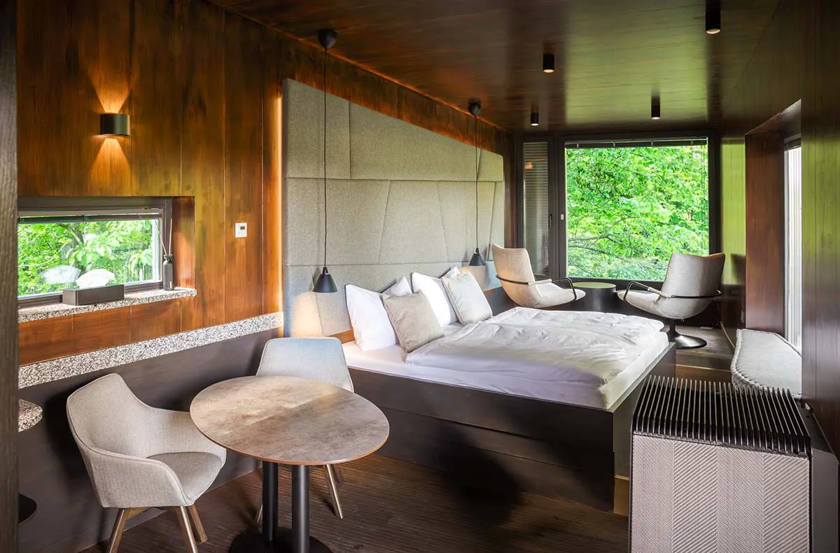 Eine Übernachtung im Baumhaus in Schrems schafft wertvolle Erinnerungen inmitten der Natur. Hoch oben zwischen den Baumwipfeln wartet ein stilvolles Refugium, ideal für gemeinsame Zeit in idyllischer Umgebung. Ob an der Klippe oder am Teich – der Blick ins Grüne sorgt für Entspannung. Eine erholsame Nacht und besondere Momente machen diesen Aufenthalt unvergesslich. Nach der Ankunft wartet eine Flasche Wein im Baumhaus, perfekt, um die Aussicht gemeinsam zu genießen. Am Morgen startet der Tag mit einem reichhaltigen Frühstück, während das Deep Sleep Set von RITUALS für erholsamen Schlaf sorgt. Komfortable Annehmlichkeiten wie ein kostenfreier Parkplatz und eine E-Ladestation runden den Aufenthalt ab. Diese Übernachtung macht jeden Moment wertvoll.