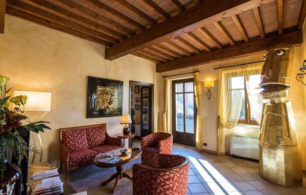 Ihr werdet im Standard-Doppelzimmer des BEST WESTERN PLUS Hotel Le Rondini übernachten. Das Hotel präsentiert sich im typisch italienischen Stil. Leicht rustikal, ländlich und doch mit jeglichem Komfort. Hier werdet ihr euch auf jeden Fall wohlfühlen. Übrigens habt ihr an diesem Wochenende sogar die Möglichkeit, die Art eures Begrüssungsdrinks vorab selbst zu bestimmen. Zur Auswahl stehen ein Apero an der Bar oder eine Flasche Sekt auf eurem Zimmer. Ganz wie ihr wollt könnt ihr in der lebendigen Umgebung der Bar oder ganz in Ruhe auf eurem Zimmer auf zwei tolle Tage anstossen. Eine tolle Zeit kann beginnen!