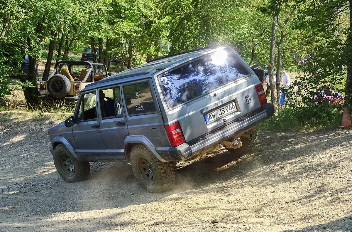 • Gefahren wird mit einem Geländewagen Jeep Cherokee XJ