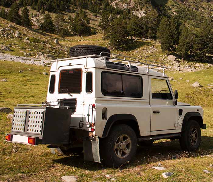 - Gefahren wird mit einem Geländewagen Jeep Cherokee XJ