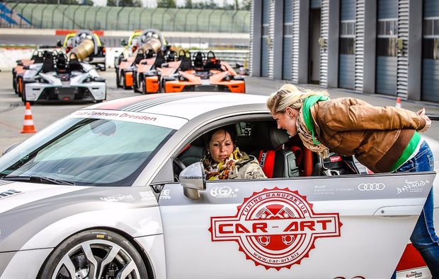 Du hast Benzin im Blut und stehst auf schnelle und exklusive Autos? Wenn Du gerne einmal mit einem solchen Gefährt über den Asphalt heizen möchtest, anstatt immer nur stiller Beobachter zu sein, dann bist Du bei der Fahrt mit dem Audi R8 in Klettwitz genau richtig. Hier drehst Du als Beifahrer 4 Runden in diesem einmaligen Renntaxi auf dem Lausitzring und kannst Dich auf unvergessliche Momente freuen. Schon allein die Kulisse dieser berühmten Rennstrecke sorgt bei Dir für das erste aufgeregte Kribbeln, bei dem die Vorfreude immer weiter zunimmt. Lasse Deinen Blick schweifen und Du entdeckst womöglich sogar das Fahrzeug, welches Dich für dieses Erlebnis echte Rennfahrerluft schnuppern lässt. Der Audi R8 versprüht die Optik eines exklusiven Sportwagens und bietet Dir sowohl Außen als auch Innen das eine oder andere Highlight, das Du nun ganz aus der Nähe begutachten kannst. Dann endlich wird auch schon Dein Traum Wirklichkeit und Du kannst es Dir in diesem rasanten Flitzer bequem machen. Am Steuer nimmt dabei ein erfahrener Profi Platz, damit Du diese 4 Runden auf dem Lausitzring als Beifahrer rundum auskosten kannst. So verspürst Du in vollem Umfang die zahlreichen Kräfte, die in den Kurven und Gerade auf Dich und das Fahrzeug wirken. Zudem beschleunigt der Audi R8 innerhalb weniger Sekunde von 0 auf 100 Stundenkilometer und drückt Dich dabei ordentlich in den Sitz. Gemeinsam mit dem Fahrer testest Du die Spitzengeschwindigkeiten aus und kannst Dich auf jede Menge Adrenalin und natürlich viel Spaß freuen. So ein Erlebnis genießt Du mit Sicherheit nicht alle Tage, sodass Du diese Erinnerungen mit Sicherheit in bleibender Erinnerung behalten wirst. Runde um Runde siehst Du die Welt an Dir vorbeirauschen und kannst Dich einmal wie ein echter Teilnehmer der DTM fühlen. Und? War alles genau so, wie Du es Dir vorgestellt hast? Oder sogar noch besser? Erlebe auf dem Lausitzring in Klettwitz eine aufregende Fahrt im Audi R8, die Du nie wieder vergessen wirst.