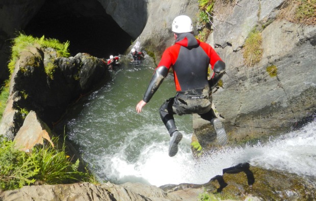 Zunächst triffst Du Dich mit dem Guide und den anderen Teilnehmern in der Basisstation, wo Du nach der Begrüßung und dem Kennenlernen mit Deiner hochwertigen Ausstattung versorgt wirst. Dann geht es mit Kleinbussen zum Einstieg in den Berg. Die Tour dauert insgesamt rund vier Stunden, in denen Du nicht nur zahlreiche kickende Momente erlebst, sondern auch jede Menge lernst – über den Berg, über Dich selbst und übers Canyoning. Schon der Einstieg in den Berg kann sich sehen lassen: Du blickst hinab in einen 30 Meter herabstürzenden Wasserfall. In den nächsten Stunden erwarten Dich beim Canyoning in Haiming nicht nur zahlreiche, weitere atemberaubende Anblicke, sondern auch jede Menge Herausforderungen, wie 12 Meter lange Wasserrutschen, Sprünge bis zu zehn Metern und Abseilhöhen bis zu 12 Metern!