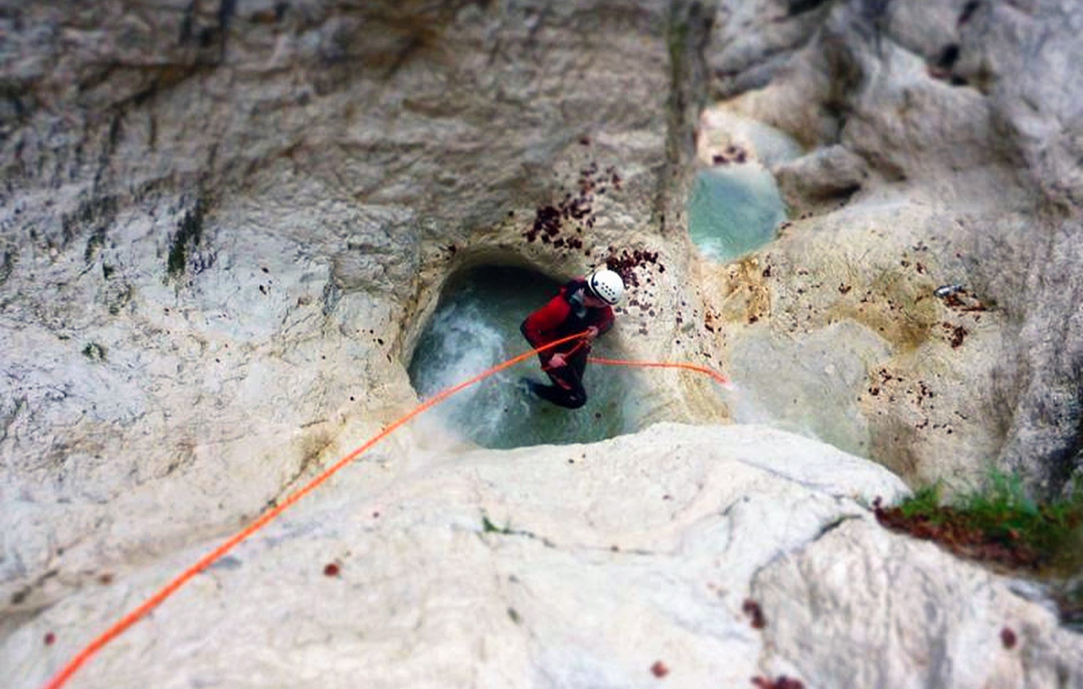 Wird gestellt: Neoprenanzug 5-6 mm, Kletterhelm, Canyoninggurt, Professionelle Canyoning Schuhe können gegen Aufpreis vor Ort geliehen werden