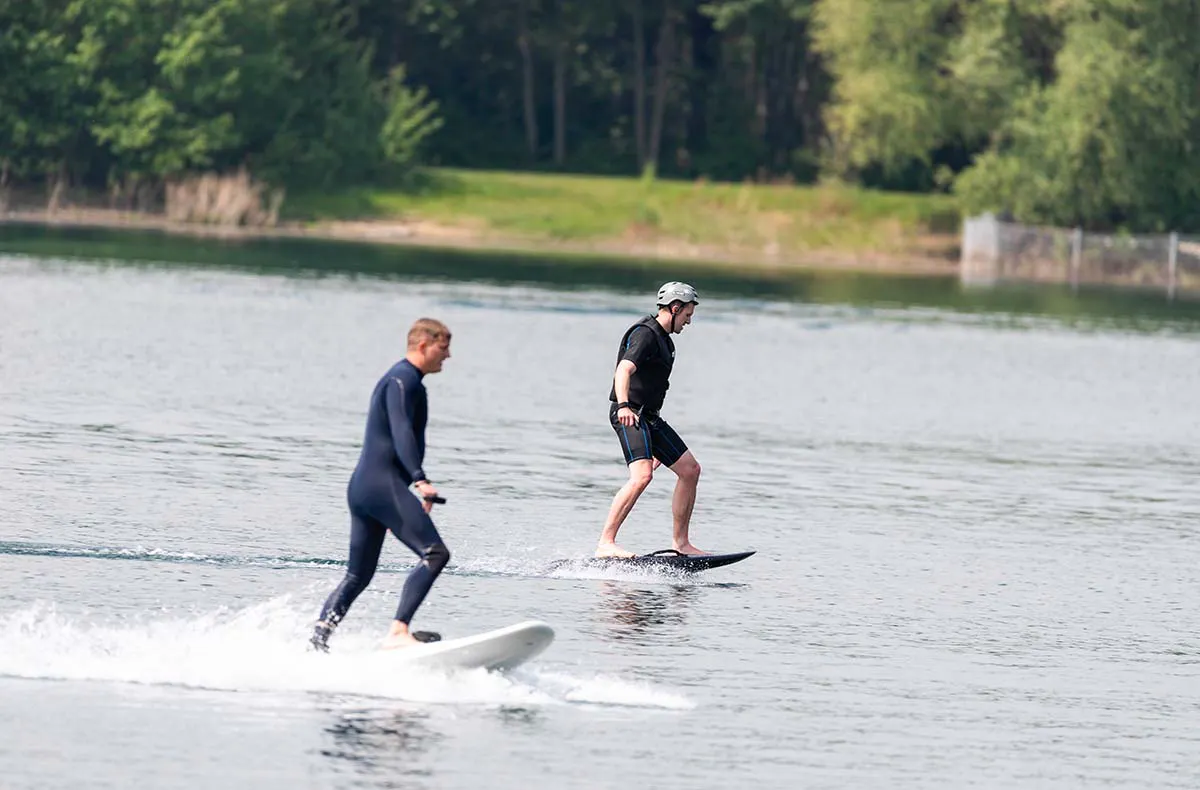 Beim E-Foil Kurs in Zülpich erlebst Du, wie mühelos sich Bewegung auf dem Wasser anfühlen kann. Auf einem elektrisch betriebenen Board gleitest Du beinahe lautlos über den See und spürst, wie sanft das Wasser unter Dir nachgibt. Nach einer kurzen Einweisung begleitet Dich ein erfahrener Trainer Schritt für Schritt, bis Du sicher und selbstbewusst auf dem E-Foil stehst. Schon nach kurzer Zeit genießt Du das ruhige Schweben und die besondere Leichtigkeit des Fahrens. Jede Minute auf dem Board vermittelt Dir Weite, Gelassenheit und ein Gefühl innerer Ausgeglichenheit. Dieses Erlebnis hinterlässt bleibende Eindrücke und schenkt Dir unvergessliche Momente auf dem Wasser. Sichere Dir Deinen Platz beim E-Foil Kurs in Zülpich und entdecke, wie harmonisch moderne Technik und Natur zusammenwirken.