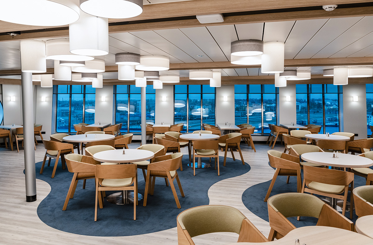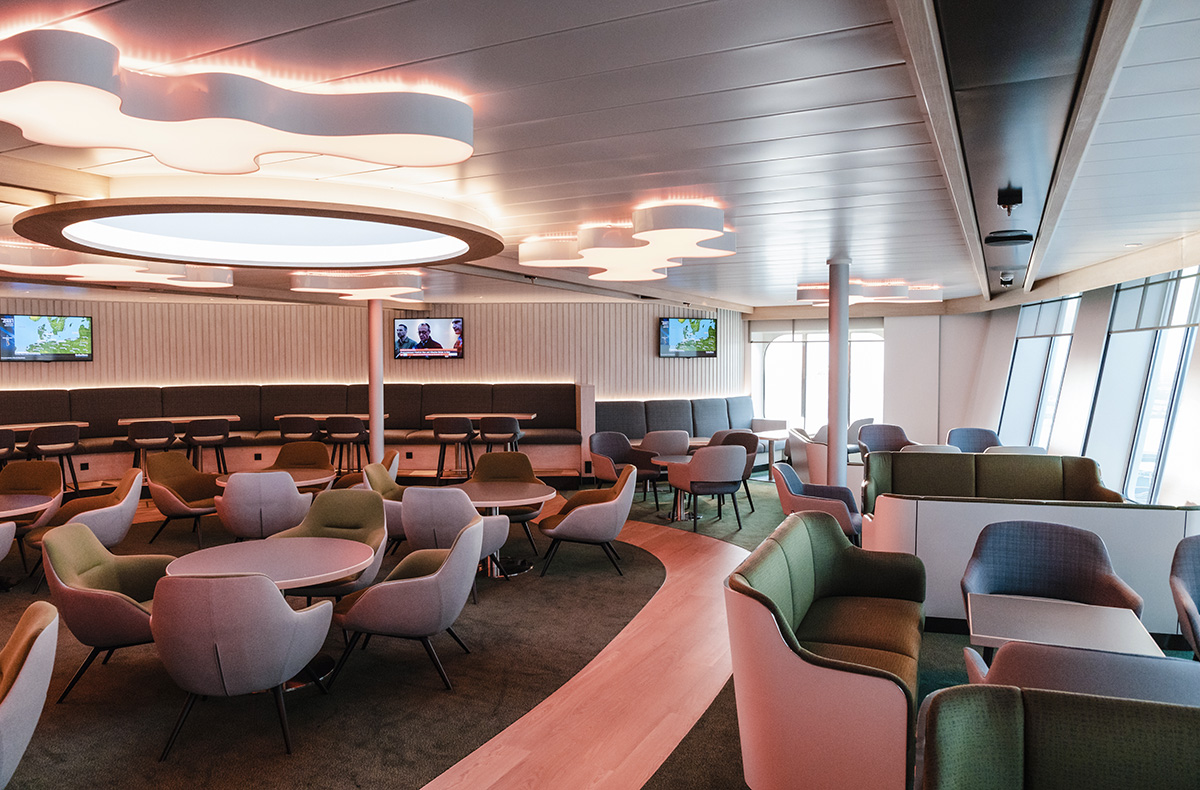 • Traditionelle schwedische Fika in der Cafeteria an Bord auf der Hinfahrt