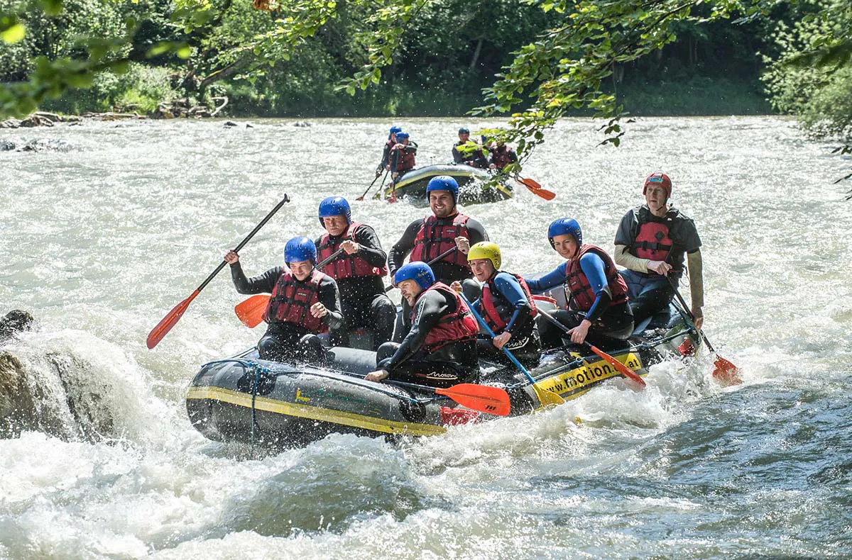 Rafting zählt schon lange als der Klassiker unter allen Wildwassertouren. Genieße den nassen Spaß im Rafting-Boot und freue Dich auf wilde Manöver. Euer geprüfter und erfahrener Guide wird Euch kurz in die Geheimnisse des Raftings einführen. Nach ein paar Schwimmübungen in der Spezialausrüstung geht es dann schon ans Eingemachte. Mit Deinem Rafting-Guide im Boot kannst Du eins werden mit der Natur und die Kraft und Intensität des Wassers spüren bzw. dagegen ankämpfen.